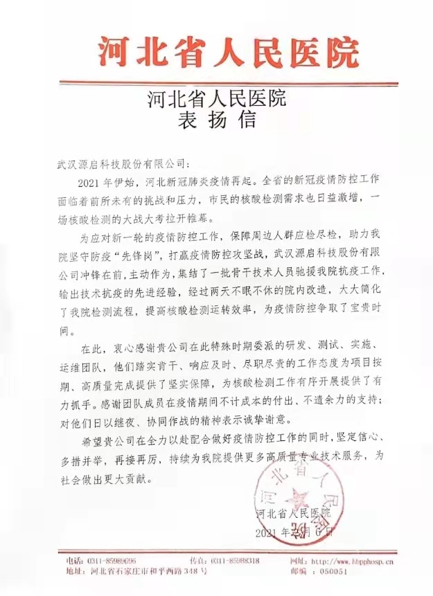 接到項(xiàng)目建設(shè)指示后,源啟團(tuán)隊(duì)星夜馳援,逆行北上,僅用兩天時(shí)間便完成了院內(nèi)系統(tǒng)改造,并迅速在全院上新核酸檢測自助服務(wù),為疫情防控工作的有序展開提供了有力抓手。近日,河北省人民醫(yī)院發(fā)來感謝信,表達(dá)了對源啟服務(wù)質(zhì)量及實(shí)施效率的高度認(rèn)可。