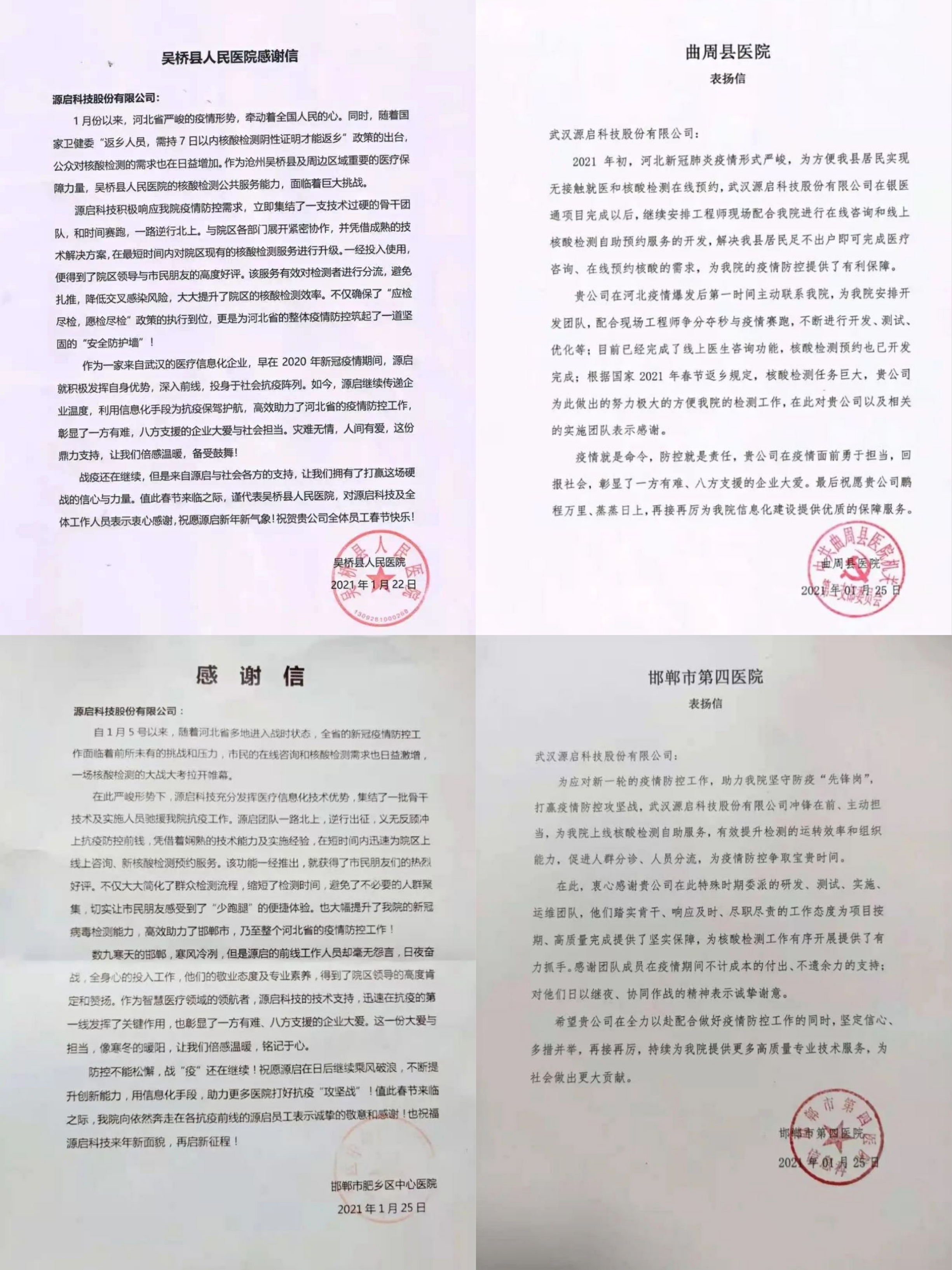 圖丨來自河北省各大醫(yī)院的認(rèn)可與感謝(部分)