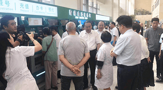 在雷院長的指引下,工作人員向與會(huì)嘉賓展示了銀醫(yī)通項(xiàng)目的成果,并現(xiàn)場(chǎng)演示了門診自助系統(tǒng)中的各項(xiàng)功能,這些功能不僅能滿足醫(yī)院多渠道、多業(yè)務(wù)的服務(wù)需求,還有利于減少就醫(yī)流程、提高就醫(yī)效率。麻城市婦幼保健院的信息化建設(shè)也獲得市衛(wèi)生局的高度認(rèn)可,示范作用可見一斑。