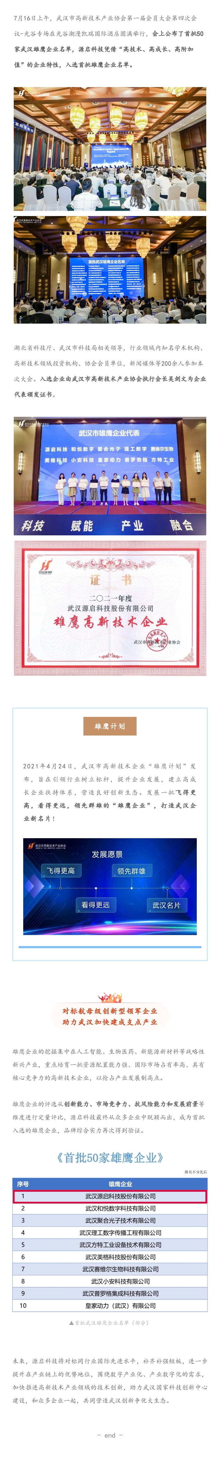 捷報(bào)丨源啟科技入選首批50家武漢雄鷹企業(yè)名單
