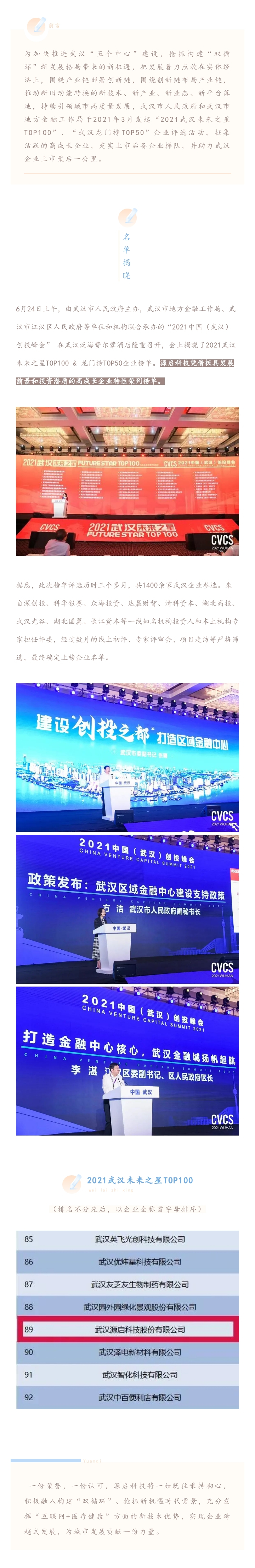 快訊丨源啟科技獲評“2021年武漢未來之星TOP100”